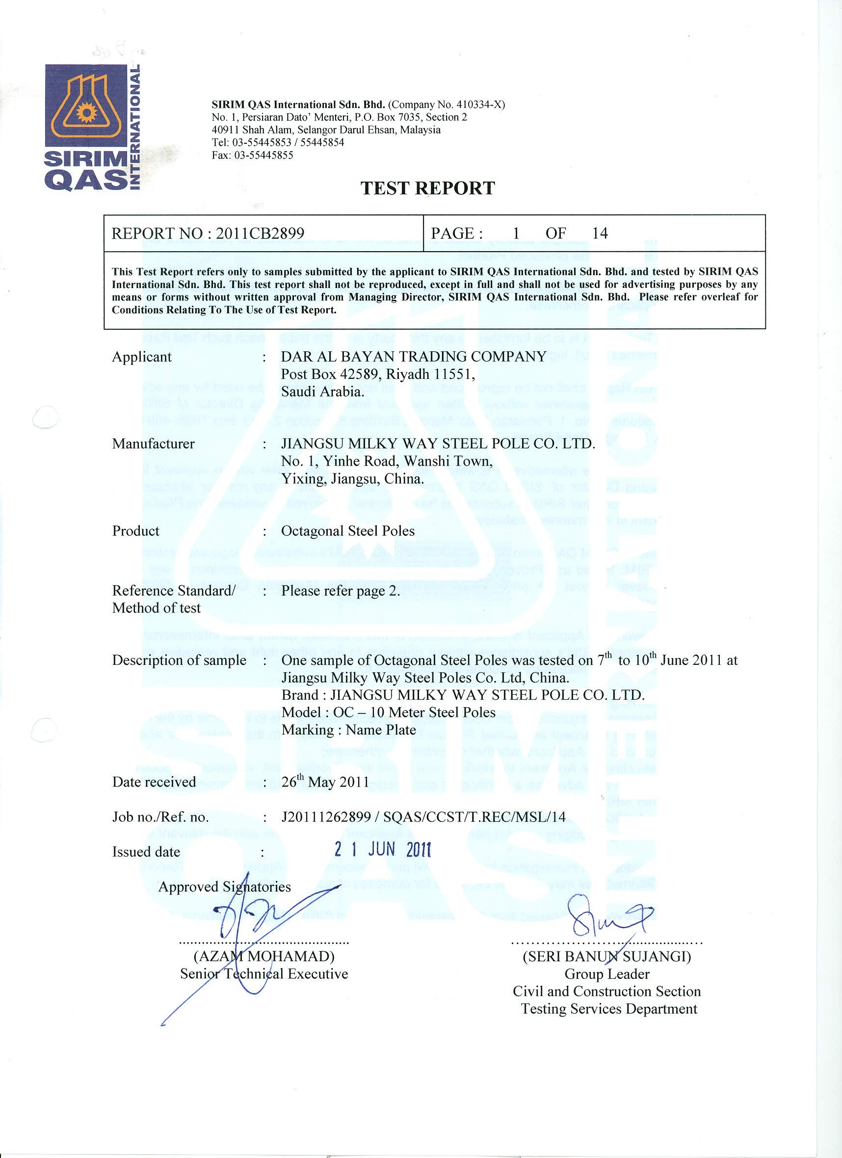il certificato del mulino 1.A emesso dalla fabbrica del mulino con il bollo e la firma deve essere fornito prima scarica il materiale nella nostra fabbrica, altrimenti abbiamo nostra ragione di rifiutare il materiale.