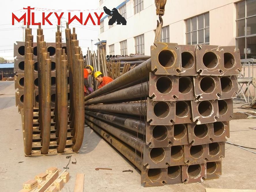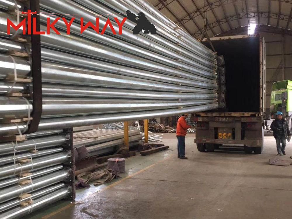 | Processo di produzione del palo ad albero maestro | Test delle materie prime→ Taglio →Stampaggio o piegatura →Saldatura (longitudinale)→Verifica delle dimensioni →Saldatura della flangia →Foratura dei fori →Calibrazione →Sbavatura→Zincatura o verniciatura a polvere, verniciatura →Ricalibrazione→Filettatura →Pacchetti |