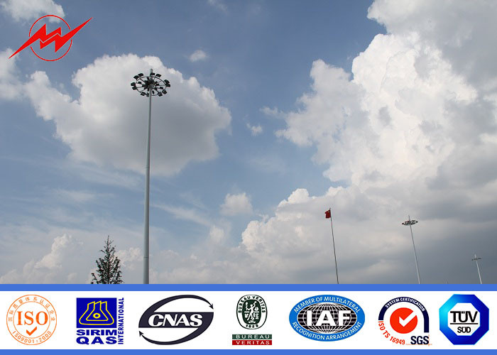 alta illuminazione del centro sportivo del palo dell'albero Q345 di 50m con il sistema di sollevamento. L'alto palo dell'albero è costruito per le applicazioni dove l'affidabilità e la facilità di servizio sono considerazioni primarie. Gli alti sistemi di illuminazione dell'albero sono eccellenti per le grandi aree all'aperto illuminanti come: